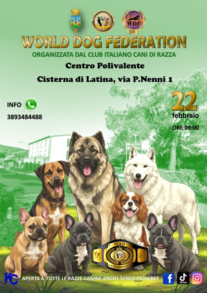 THIS SECTION CONTAINS THE DOG SHOWSPROGRAMMED IN AFFILIATED COUNTRIESTHAT YOU CAN CONSULT FREELY World Events Calendar 2025 2025 ClubEvent MonthEvent TypeState / Region / CityFlagsRulesJanuaryCACRomaniaFebruaryCACIBAlgeriaFebruaryCACIBLatviaFebruaryCACIBItalyMarchCACIBRomaniaMarchCACIBLatviaApril2xCACIBItalyApril2xCACIBQatarMay2xCACIBItalyMayCACIBAlgeriaMayCACIBLatviaMay2xCACIBRomaniaJuly2xCACIBItalyAugustCACIBRomaniaAugustCACIBLatviaSeptember3xCACIBItalySeptemberCACIBRomaniaSeptemberCACIBAlgeriaOctoberCACIBLatviaOctoberCACIBItalyOctoberCACIBRomaniaNovemberCACIBLatviaNovemberCACIBAlgeriaDecemberCACIBLatviaDecember2xCACIBItaly EVENT POSTERS A001-WDF-Official-Rules-of-Dog-ShowDownload Official Rules Structure graphic